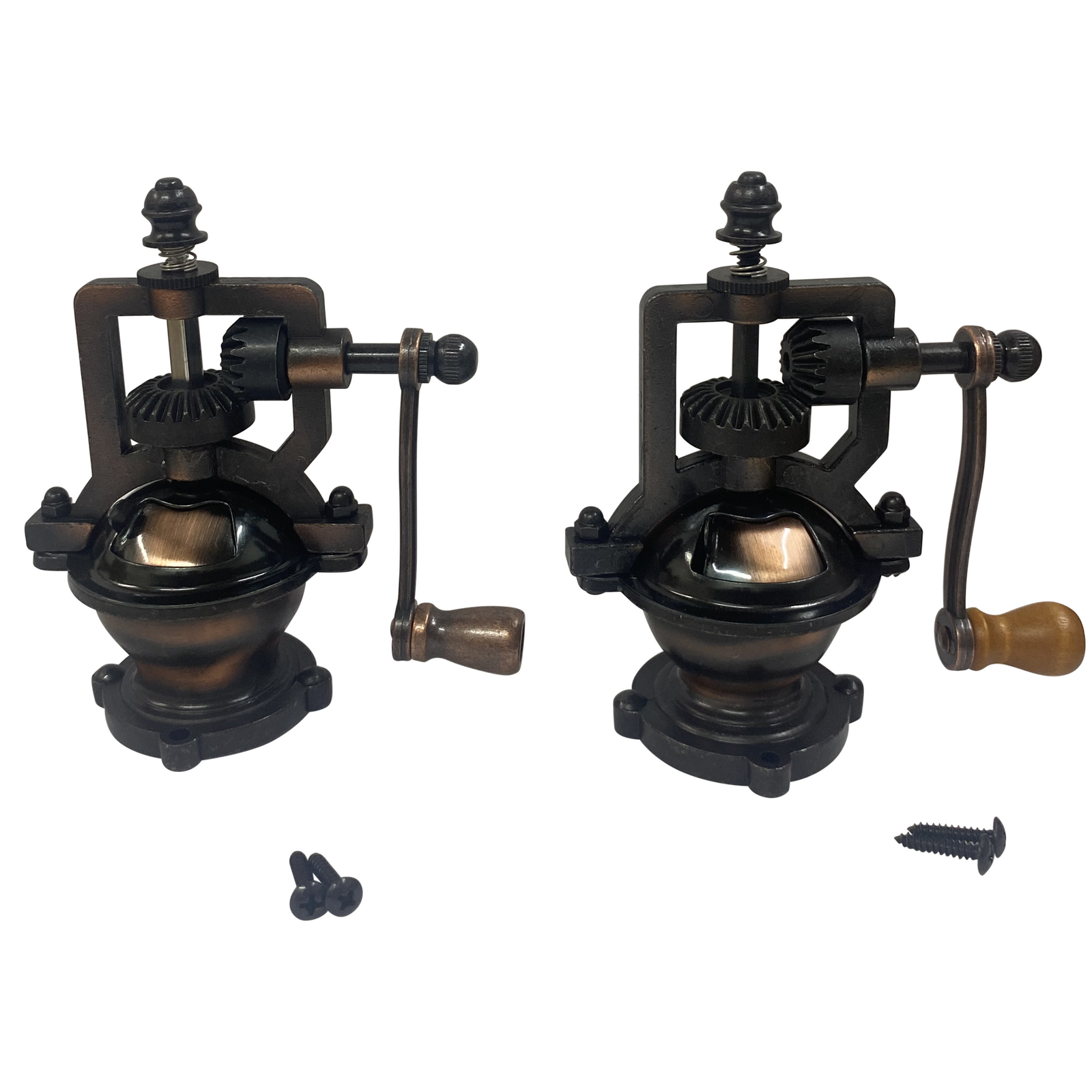 - All grinding mechanisms feature antique bronze finish