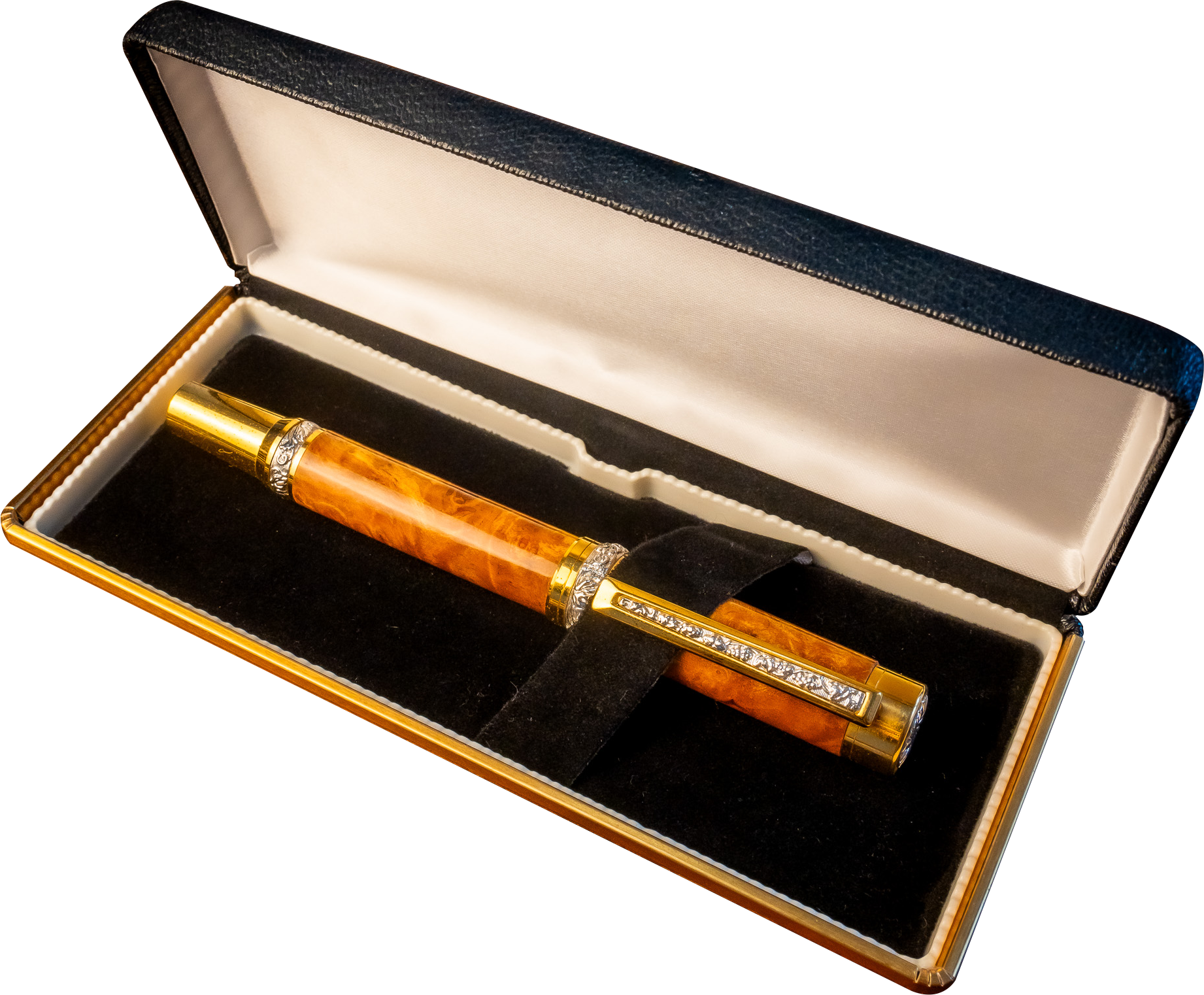 Timber on the pens are (top to bottom) Huon, Huon, Tiger Myrtle, Burl Red Mallee, Burl Red Mallee, Burl Myrtle, Burl Eucalypt, Spaulted Myrtle, Fiddleback Blackwood and finally Beefwood.
